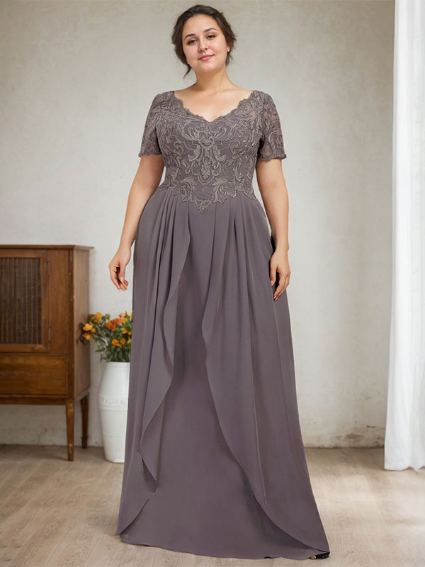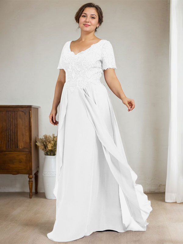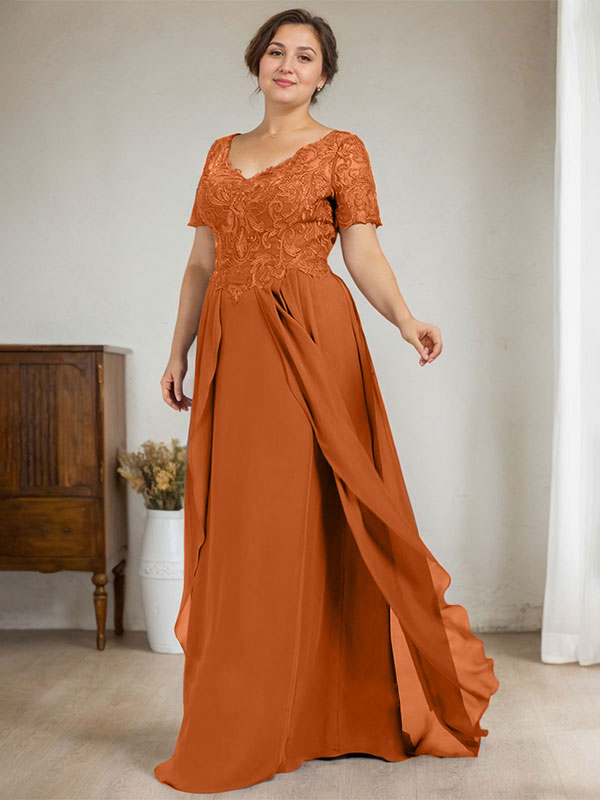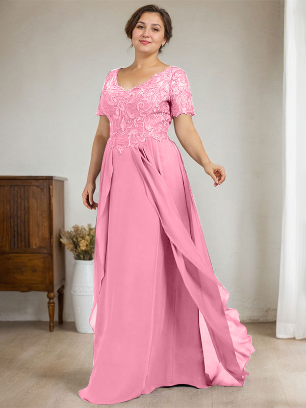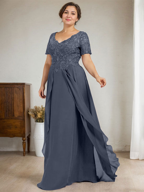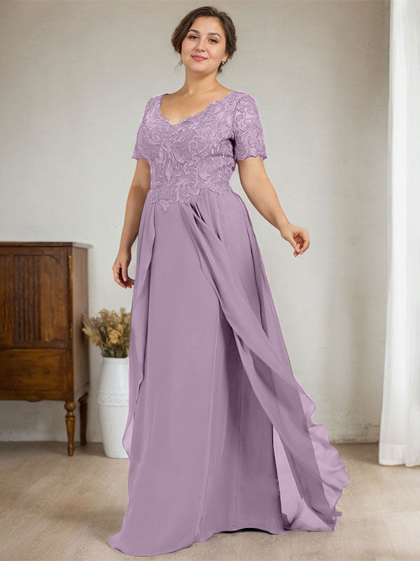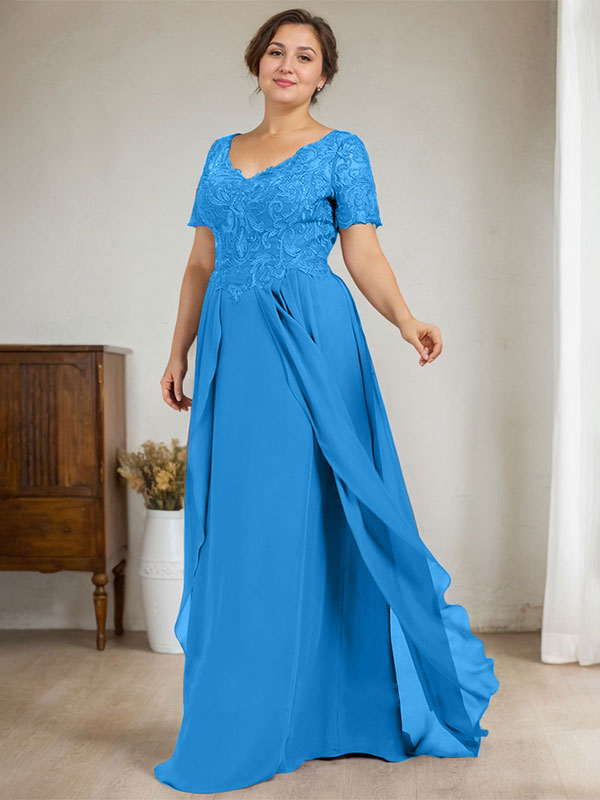 A-line V-Neck Floor-Length Chiffon Lace Mother of the Bride Dress