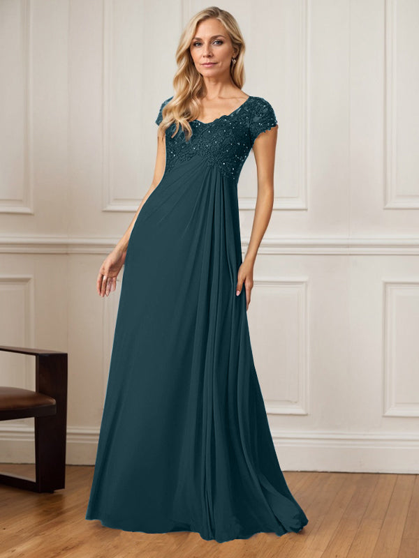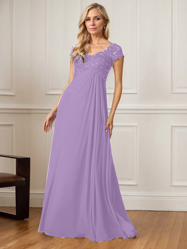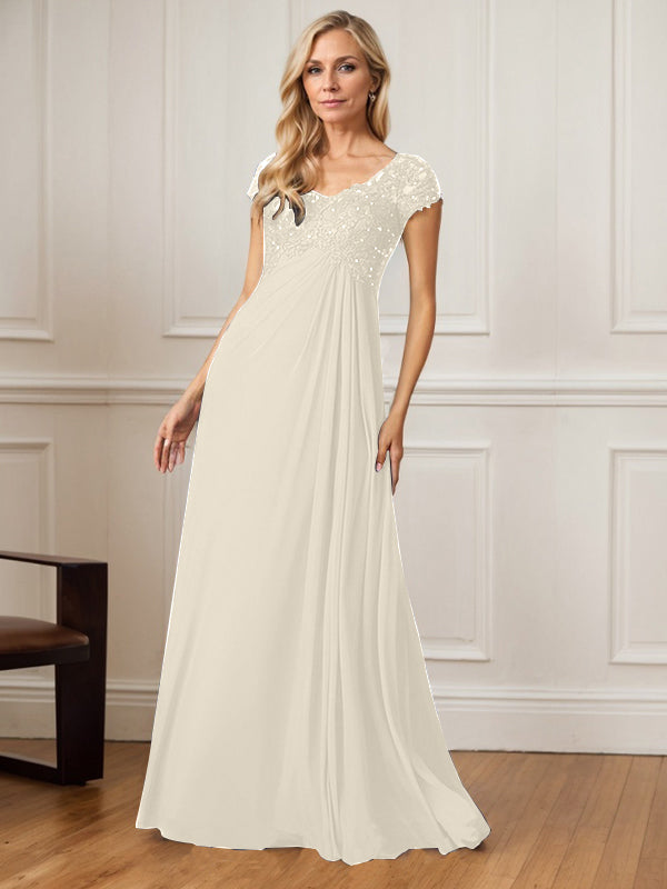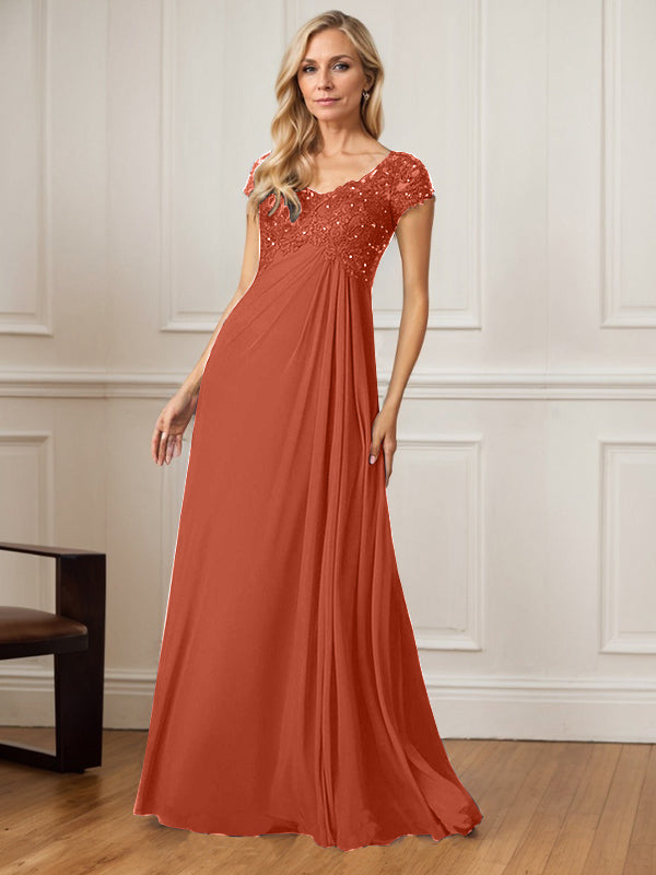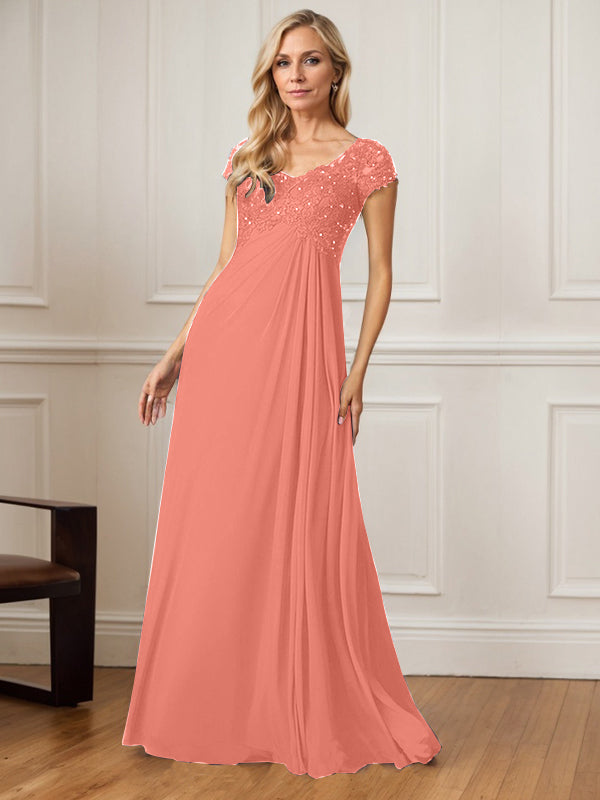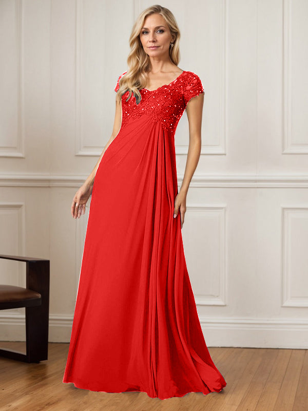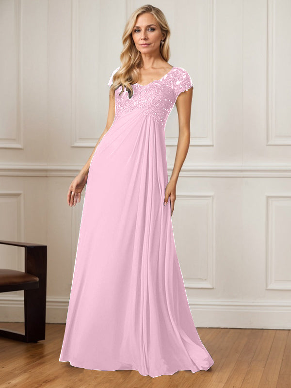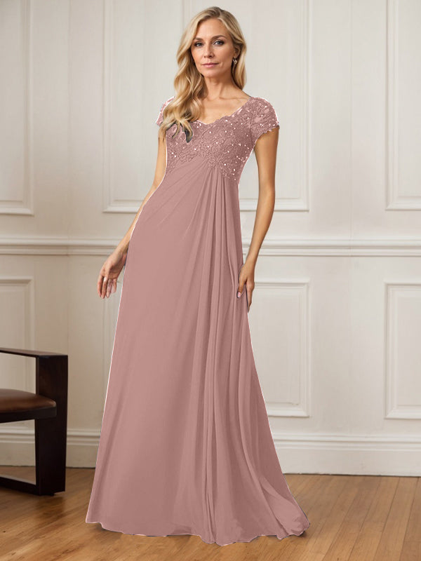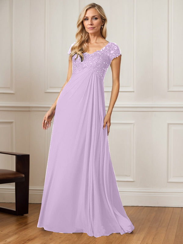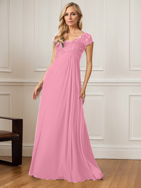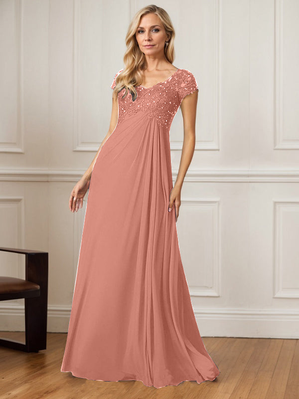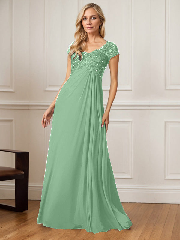 A-Line V-Neck Floor-Length Chiffon Mother of the Bride Dress