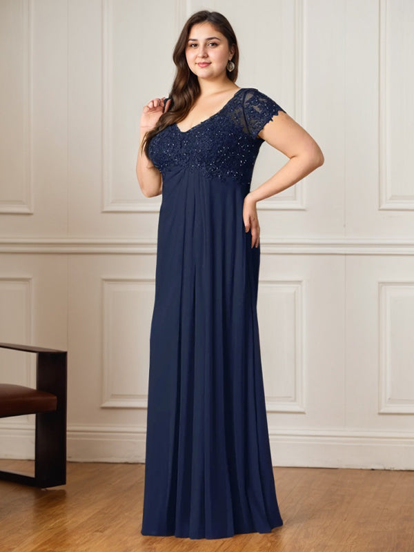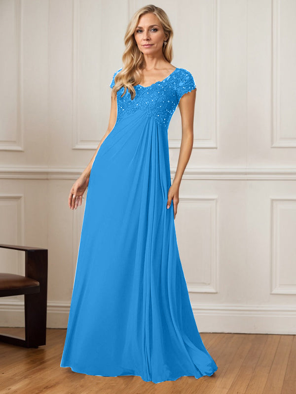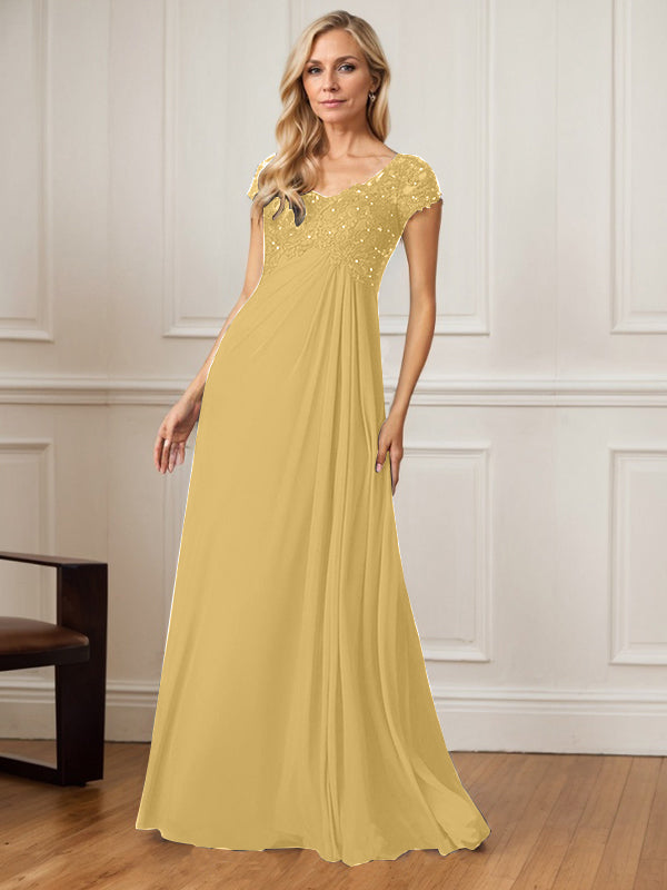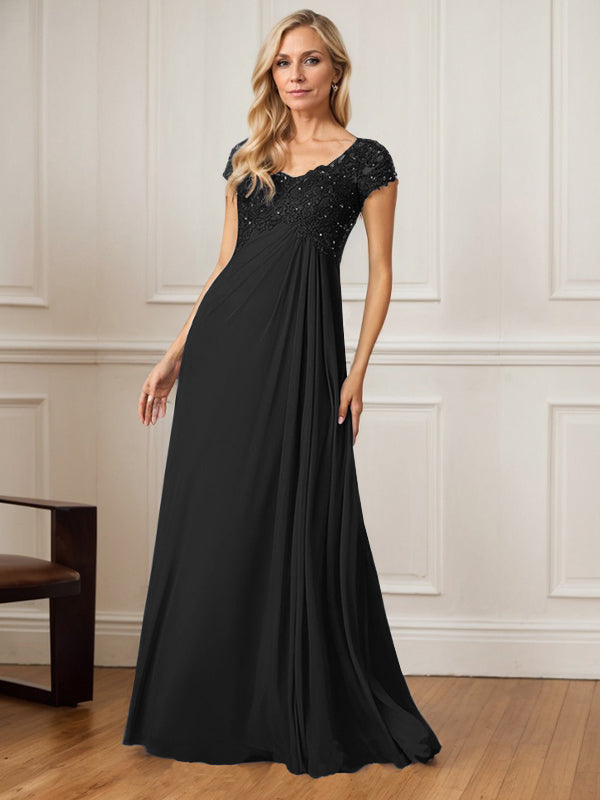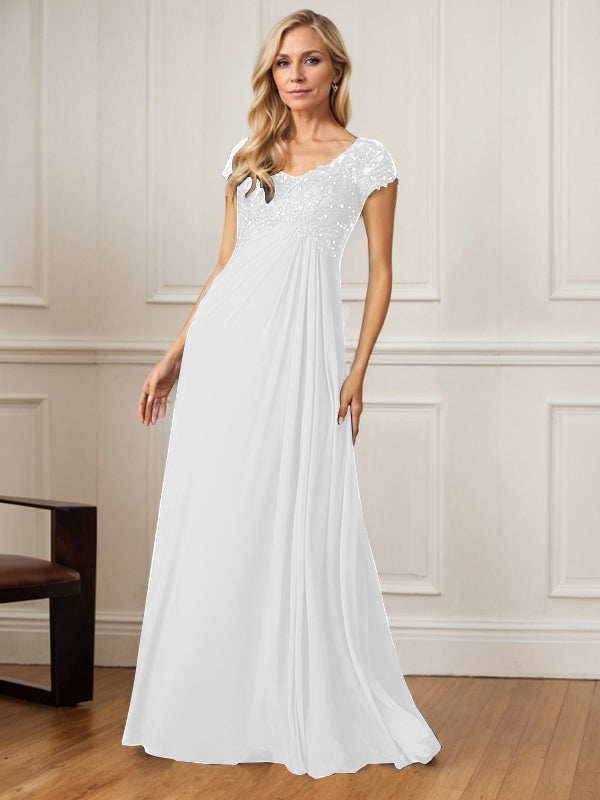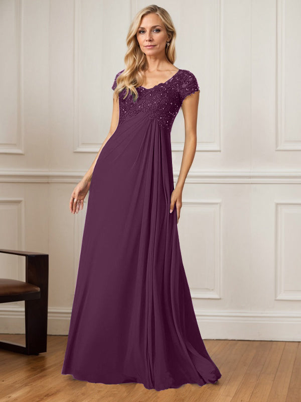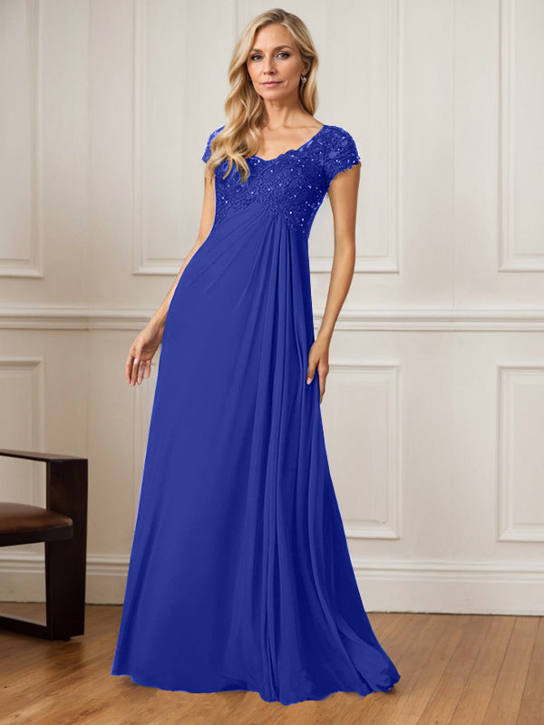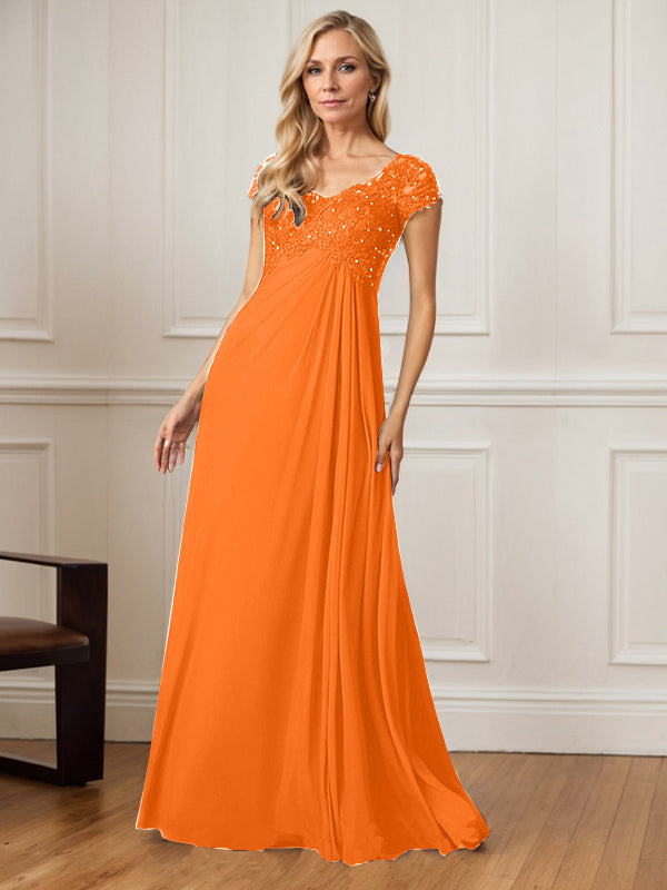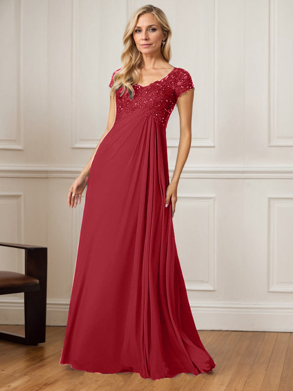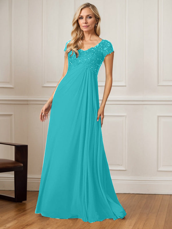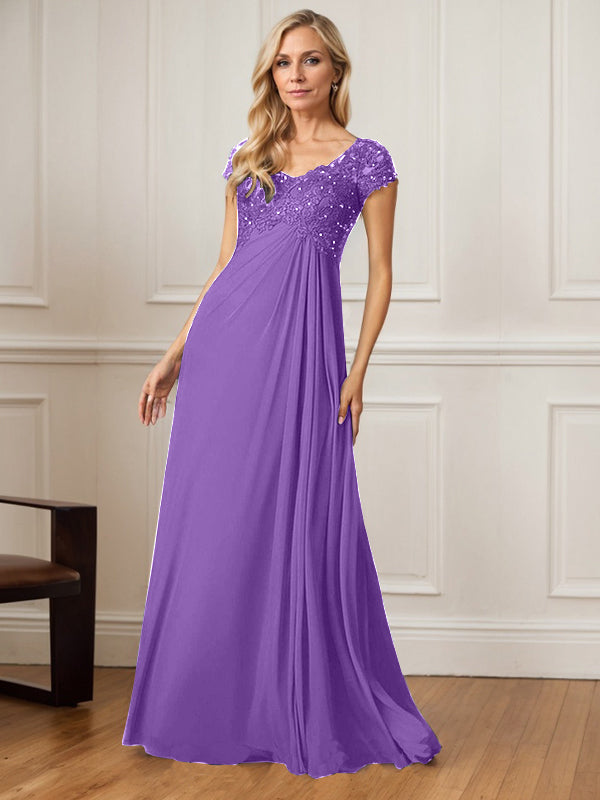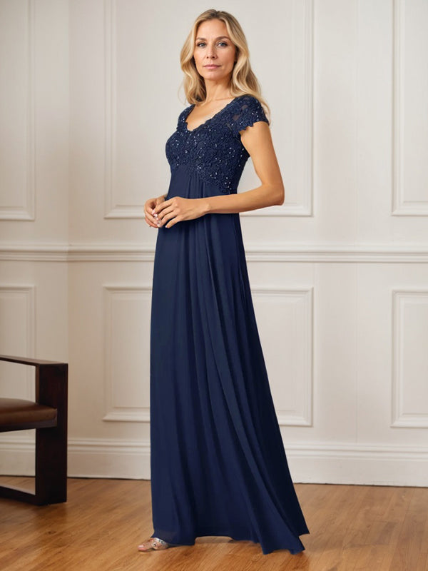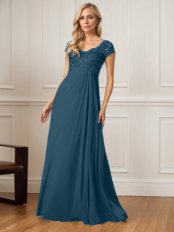 A-Line V-Neck Floor-Length Chiffon Mother of the Bride Dress