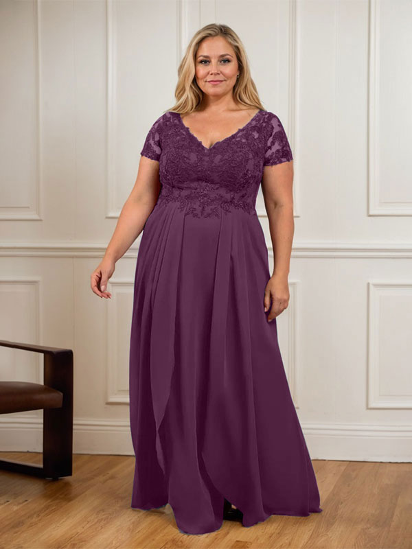 A-Line V-Neck Lace Chiffon Mother of the Bride Dress