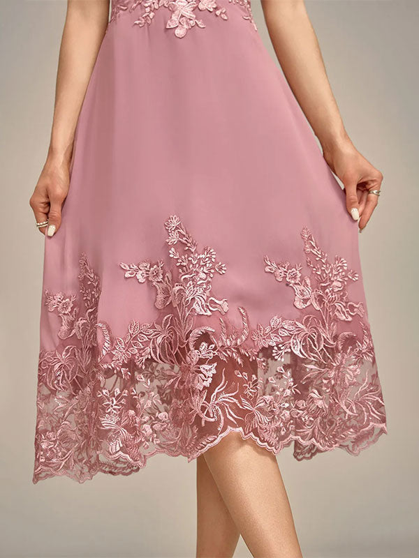 Dusty Rose A-Line Tea-Length Mother of the Bride Dress With Sequins