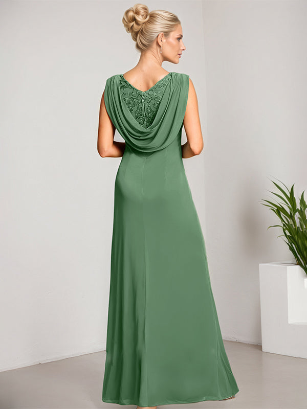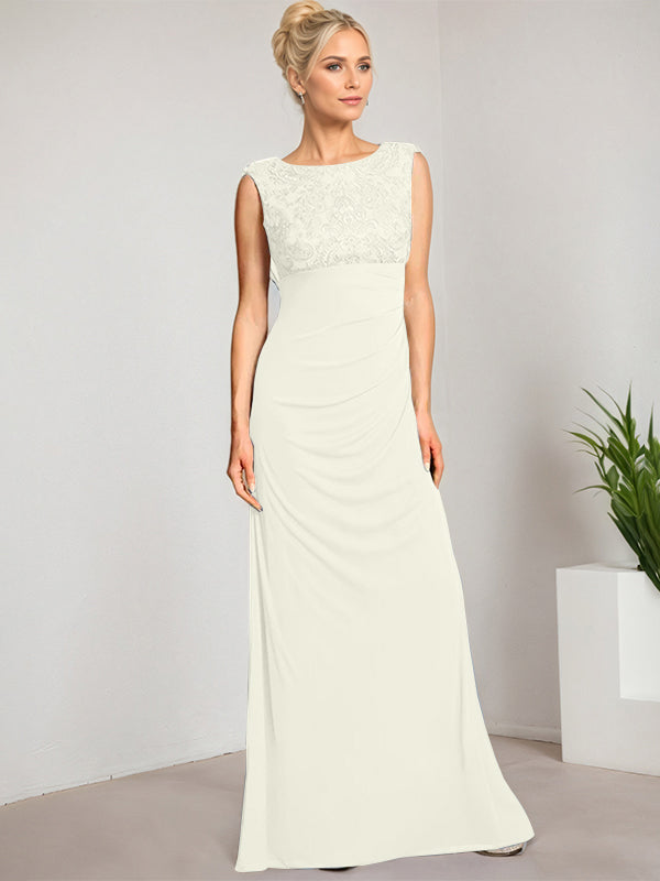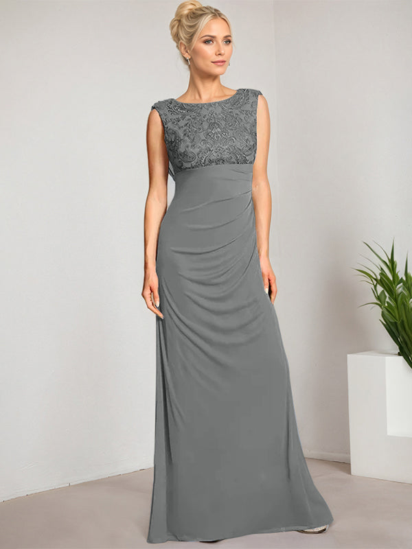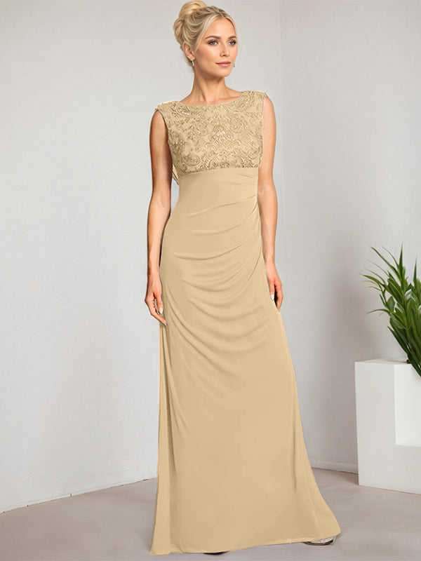 Empire Scoop Floor-Length Mesh Lace Mother of the Bride Dress With Pleated