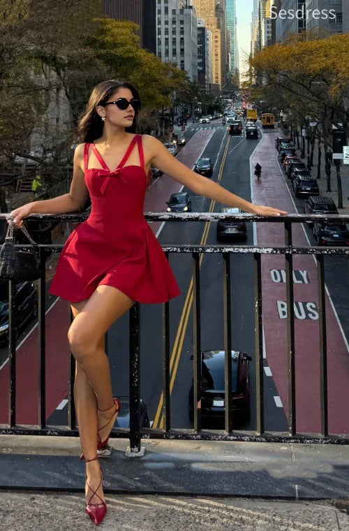 Gorgeous Burgundy Straps A-line Short Mini Dress Homecoming Dress