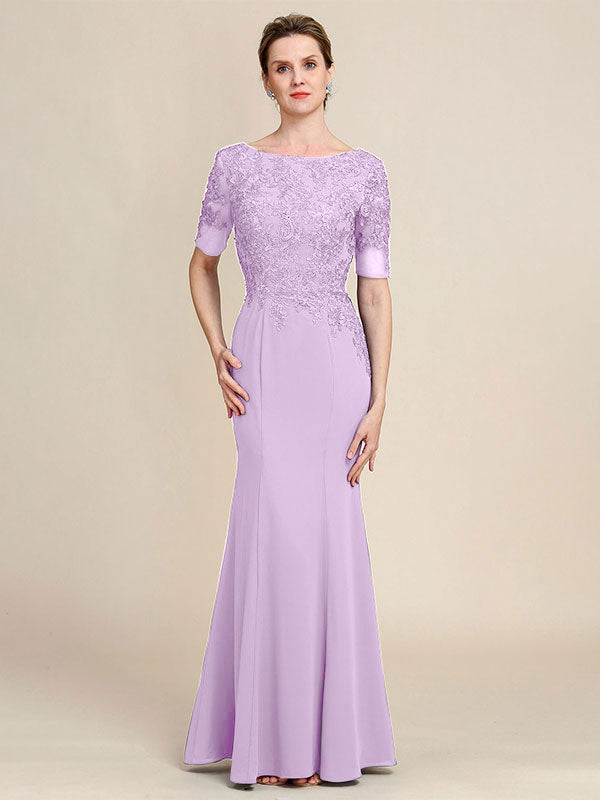 Grey Blue Mermaid Floor Length Chiffon Mother of Bride Dress With Appliques
