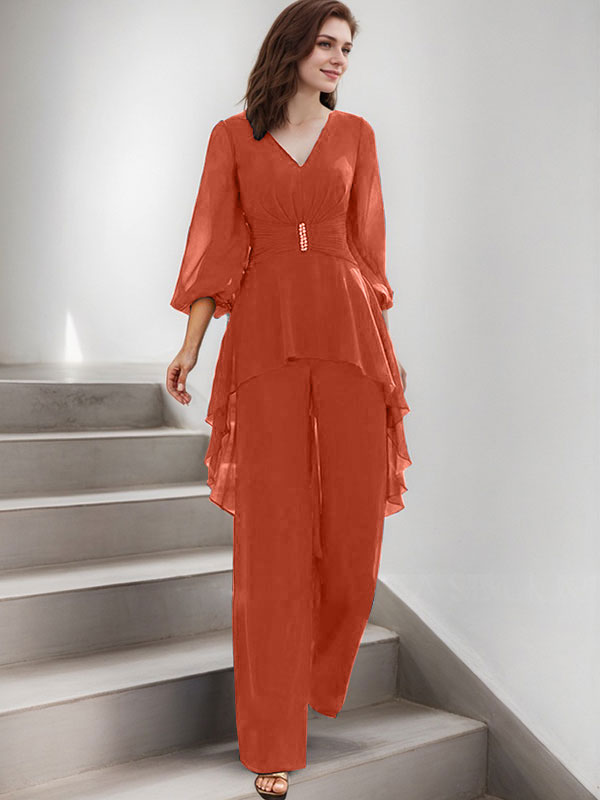 Jumpsuit/Pantsuit Puff Slevees Chiffon Mother Of The Bride Dresses