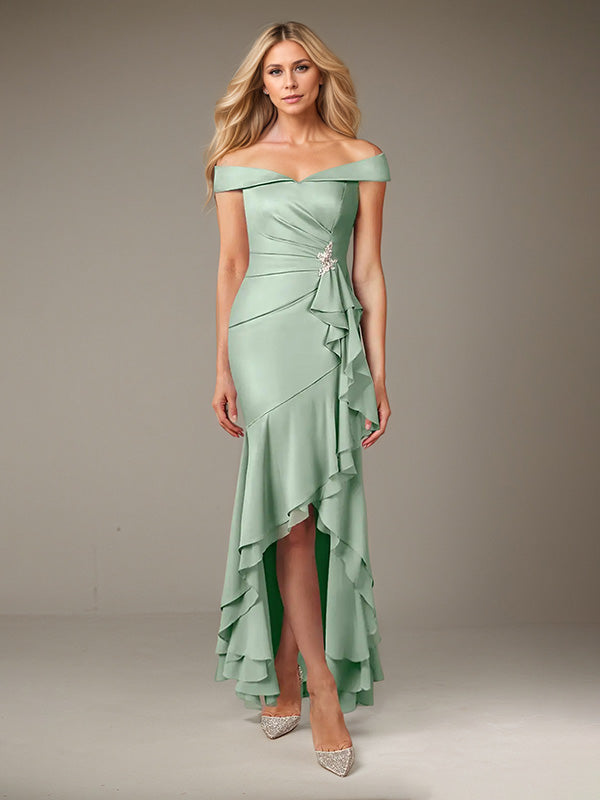 Mermaid Off-the-Shoulder Asymmetrical Satin Mother of the Bride Dress