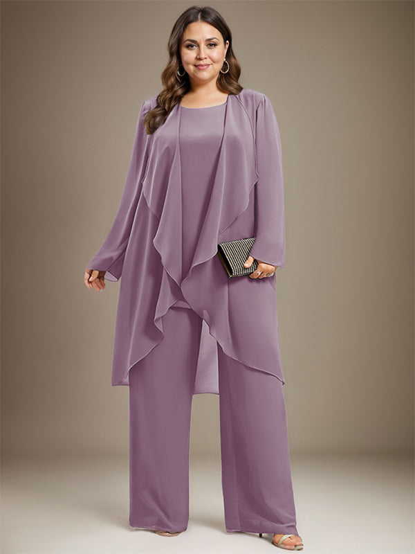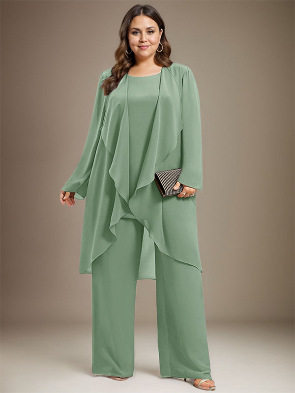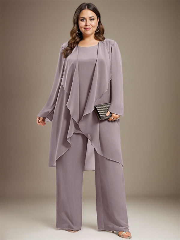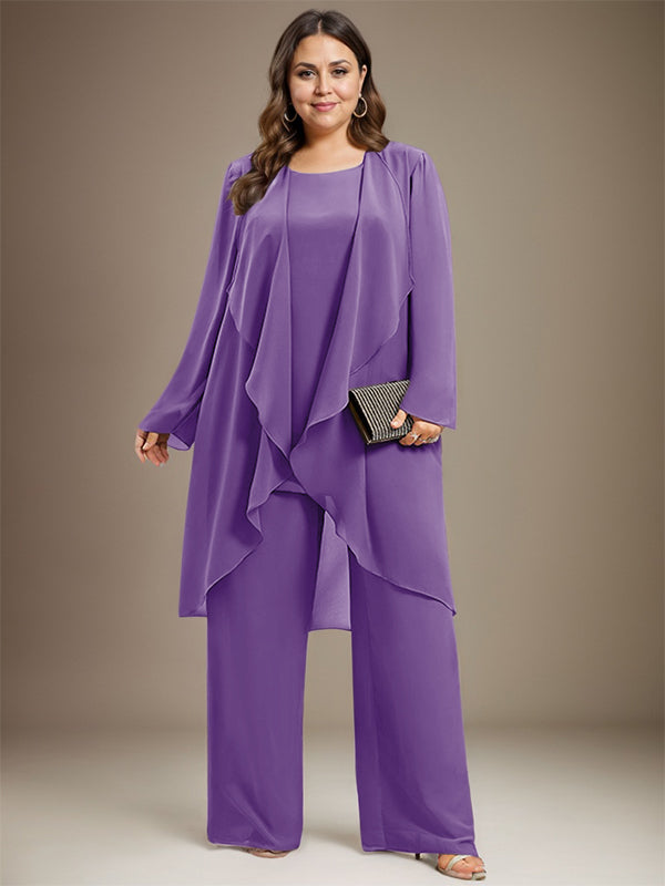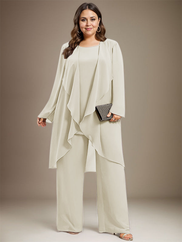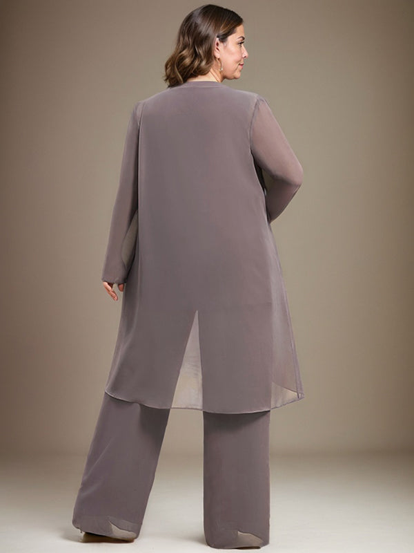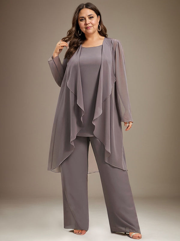 Pantsuit Separates Scoop Floor-Length Chiffon Mother of the Bride Dress