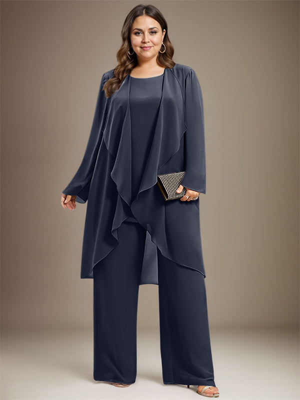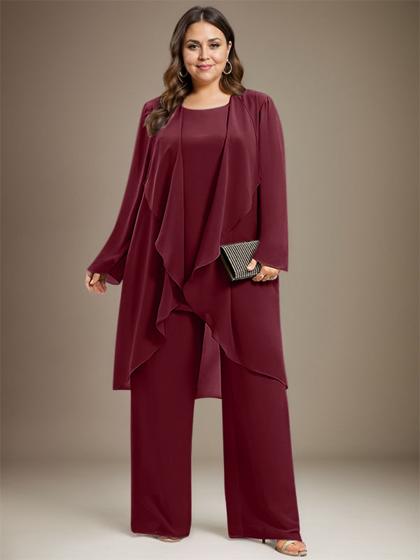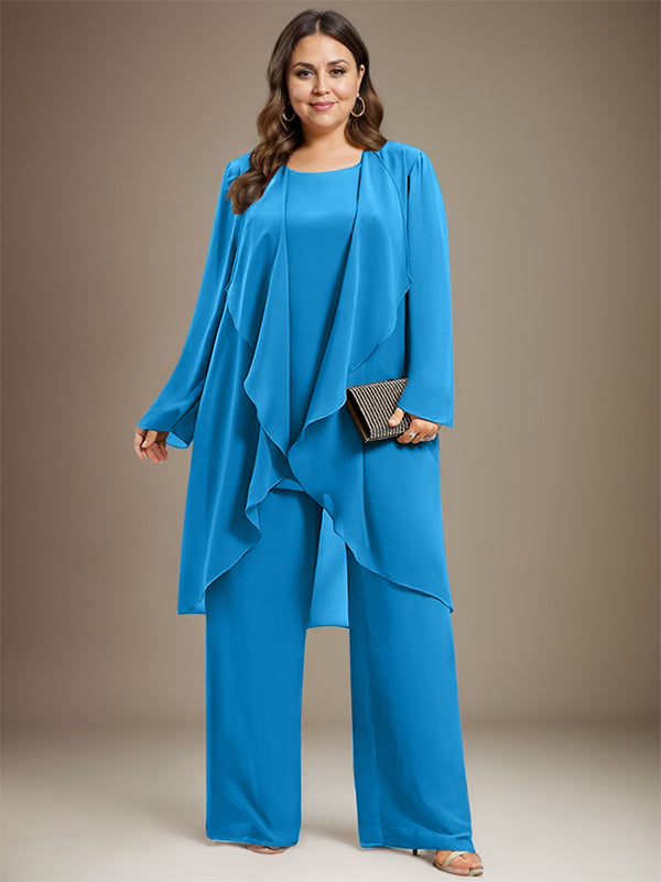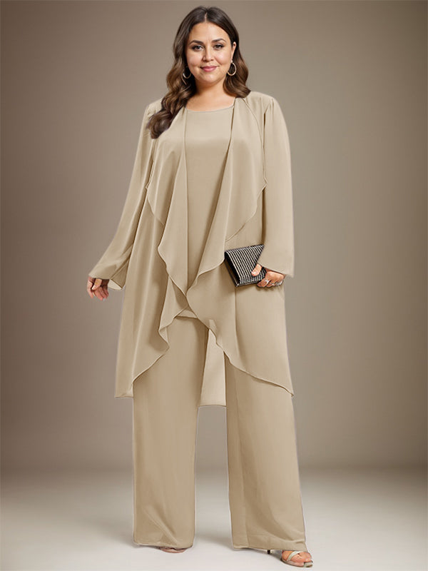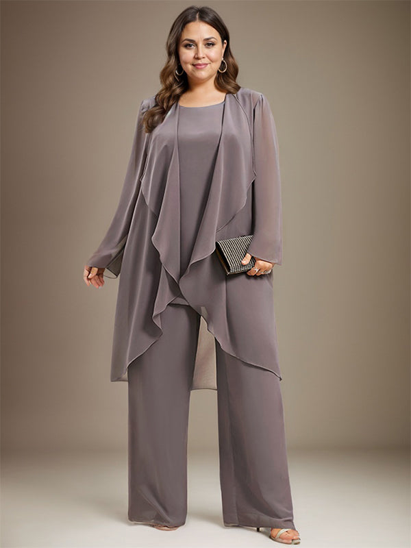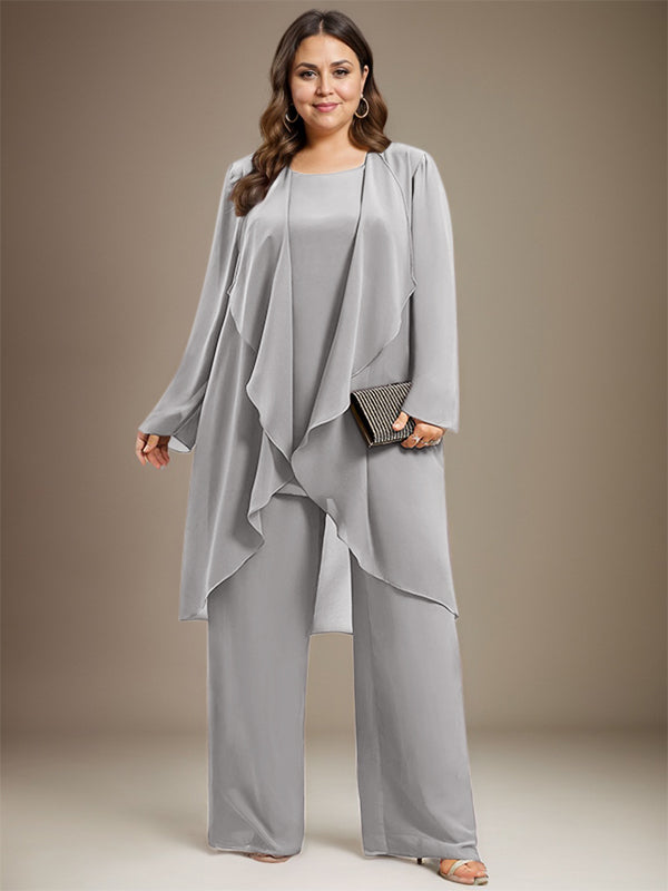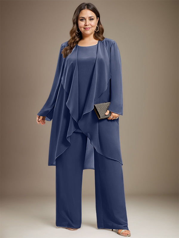 Pantsuit Separates Scoop Floor-Length Chiffon Mother of the Bride Dress