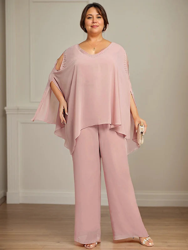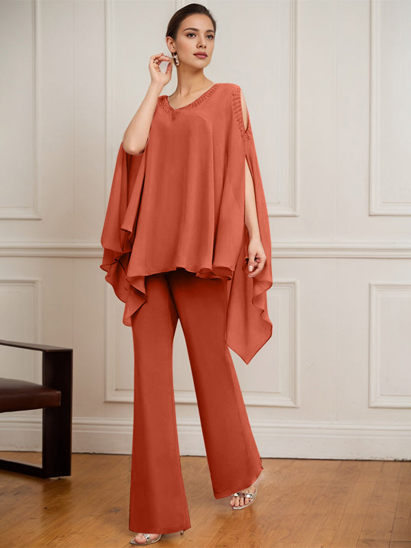 Separates Jumpsuit/Pantsuit V-Neck Floor-Length Chiffon Mother of the Bride Dress With Beading