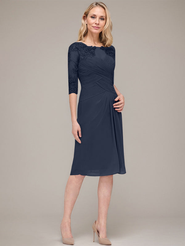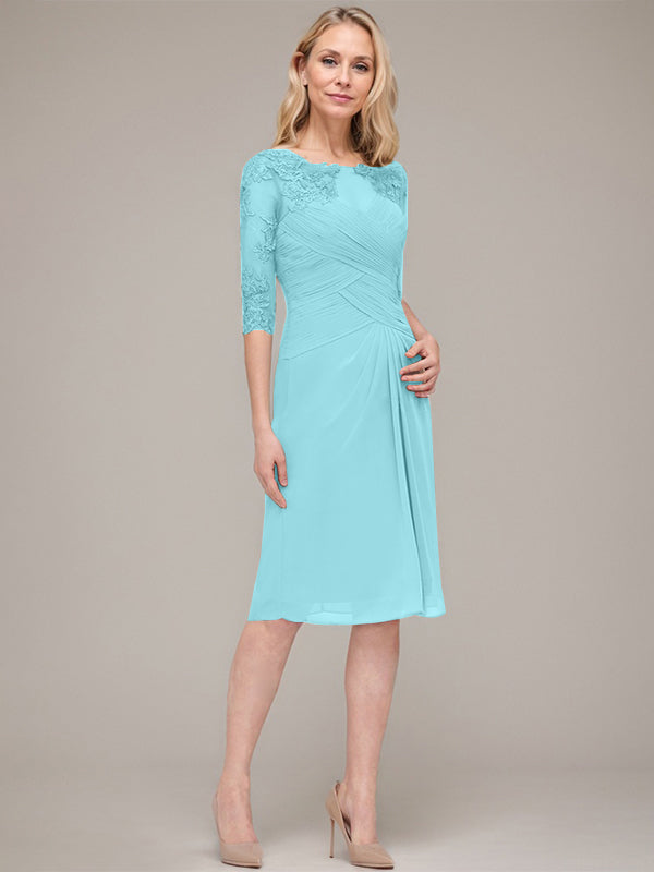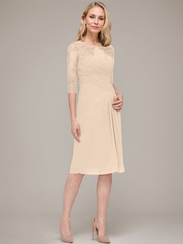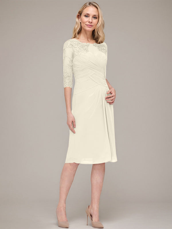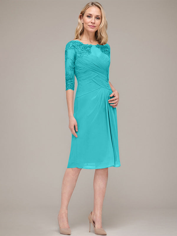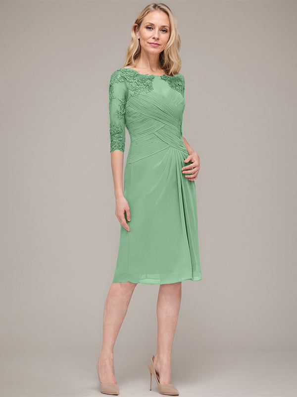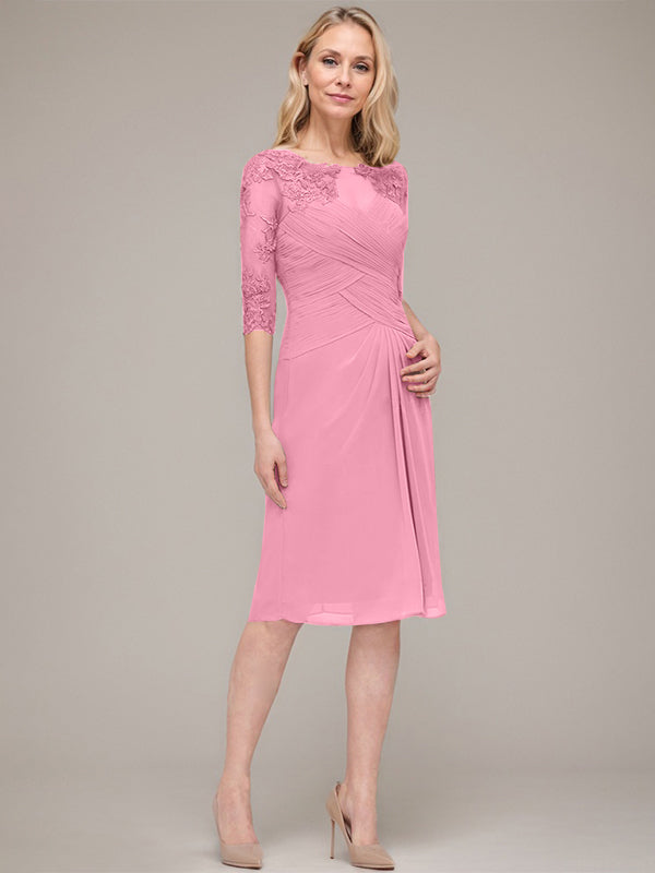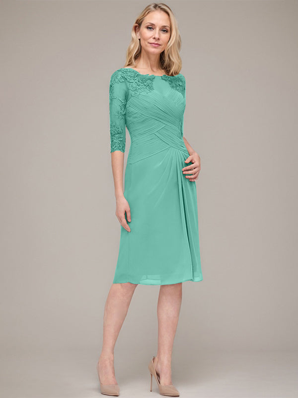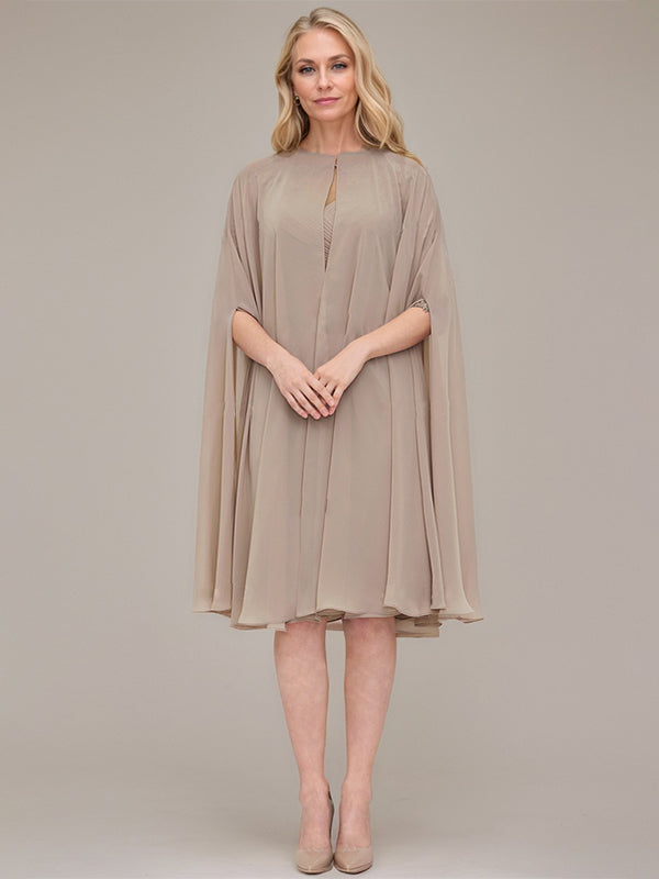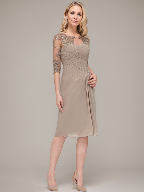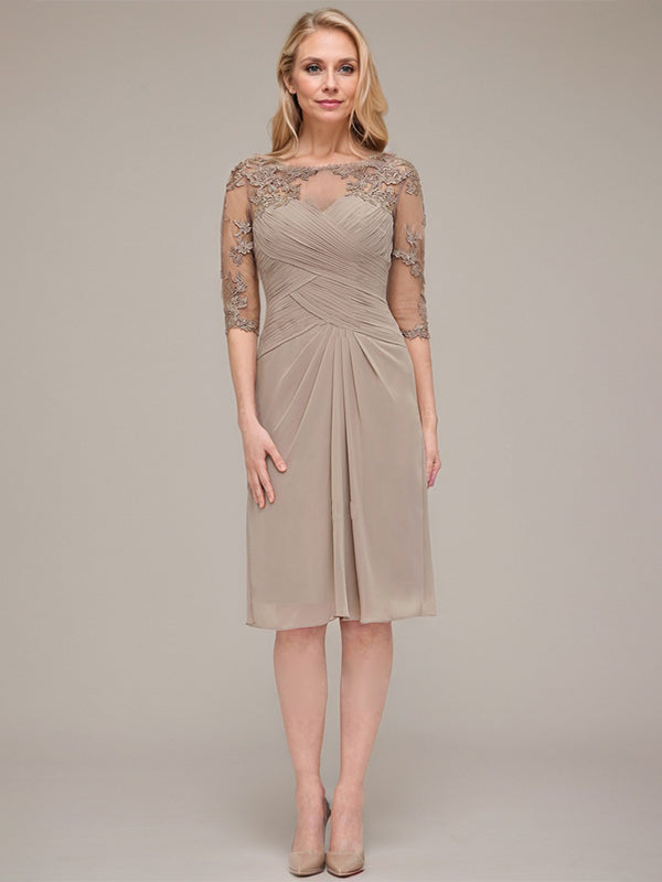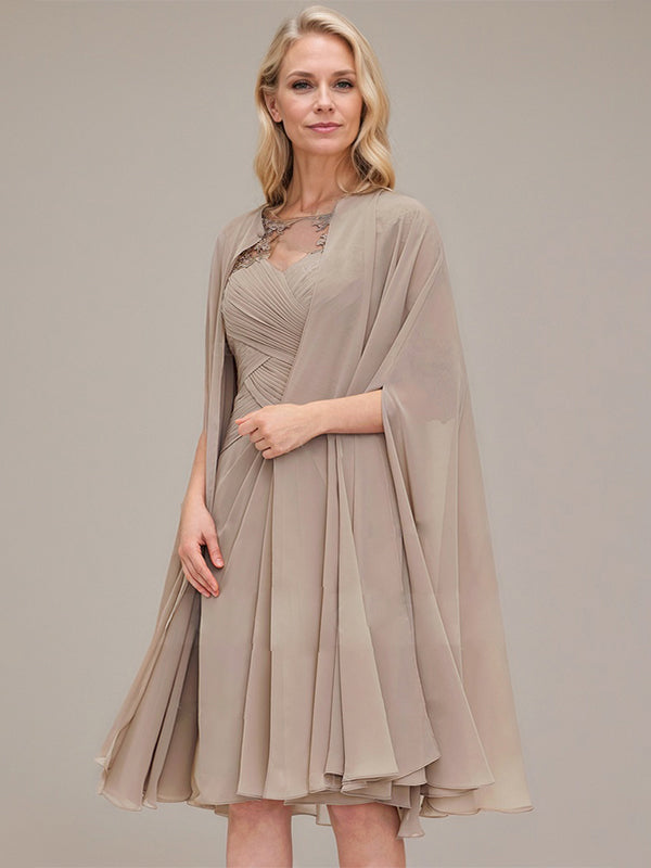 Sheath/Column Knee-Length Chiffon Mother of the Bride Dress With Jacket Appliqued Pleated
