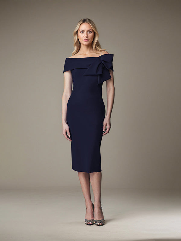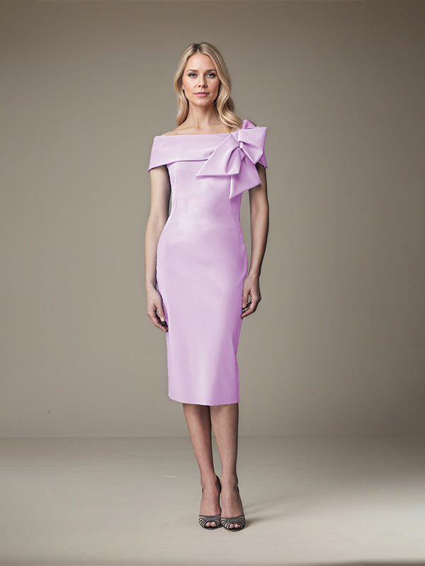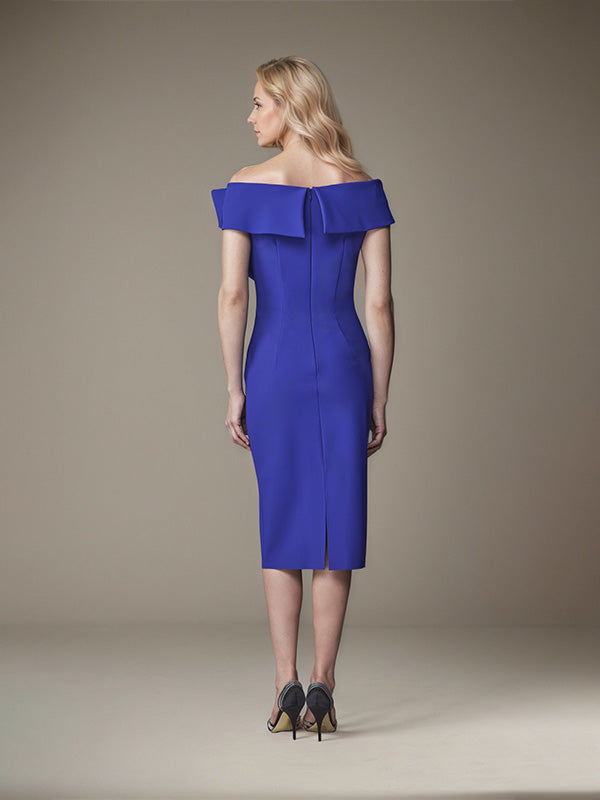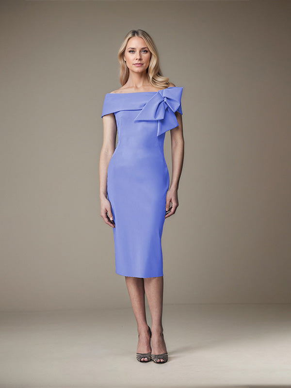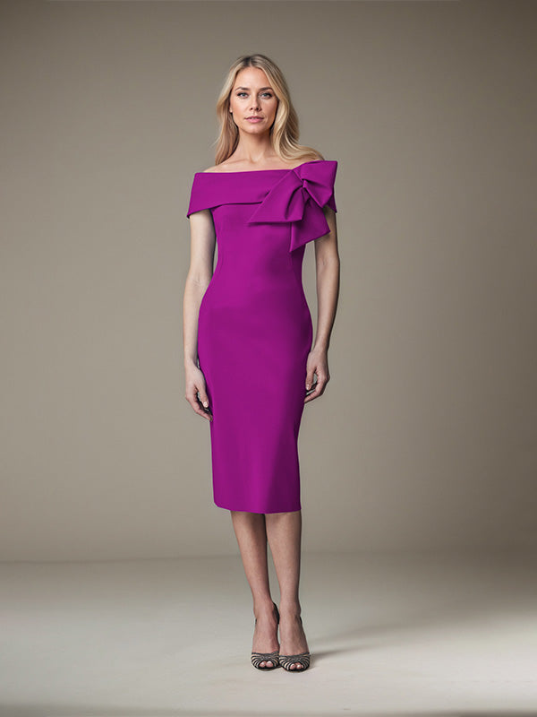 Sheath/Column Off-the-Shoulder Knee-Length Satin Evening Dress