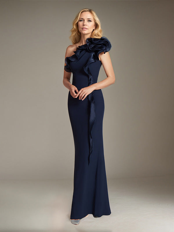 Sheath/Column One-Shoulder Floor-Length Crepe Evening Dress