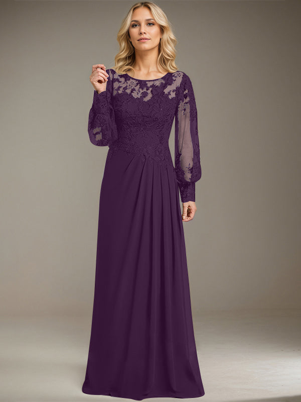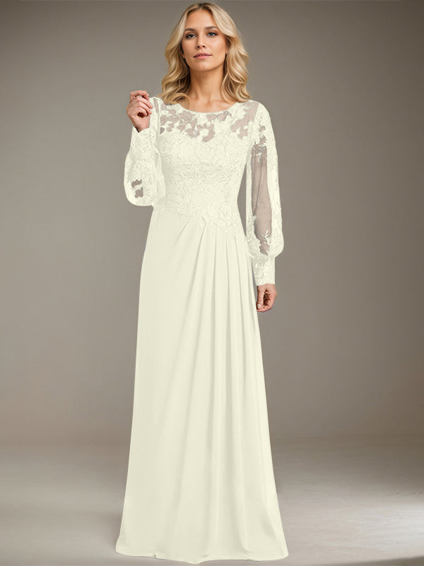 Sheath/Column Scoop Illusion Floor-Length Lace Chiffon Mother of the Bride Dress With Pleated Sequins