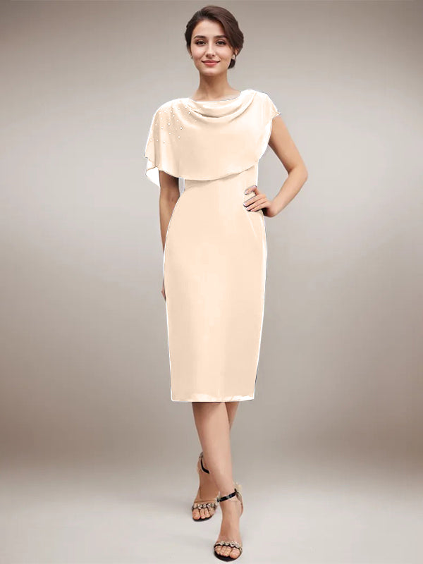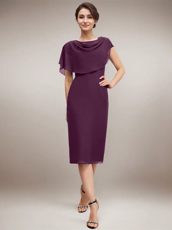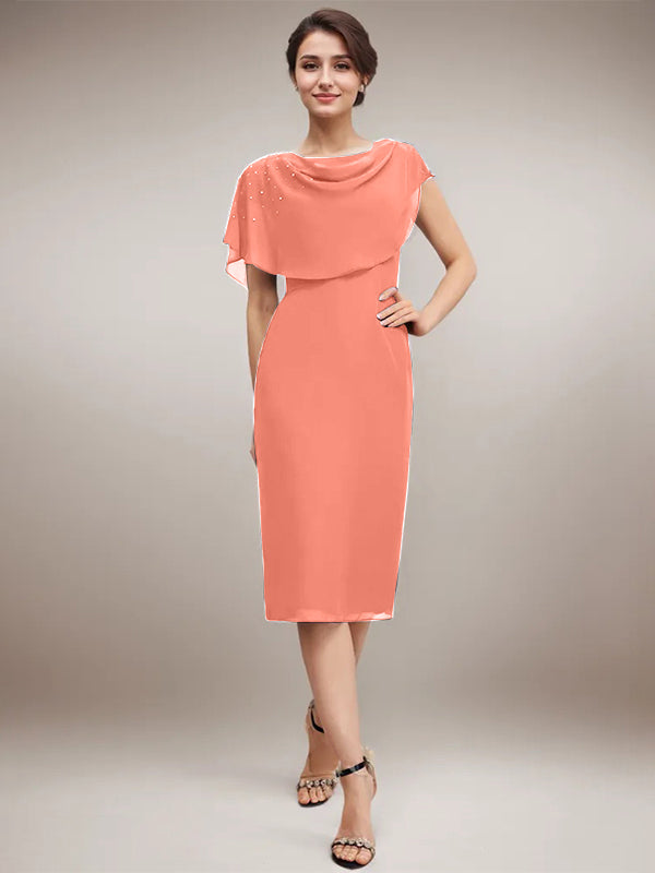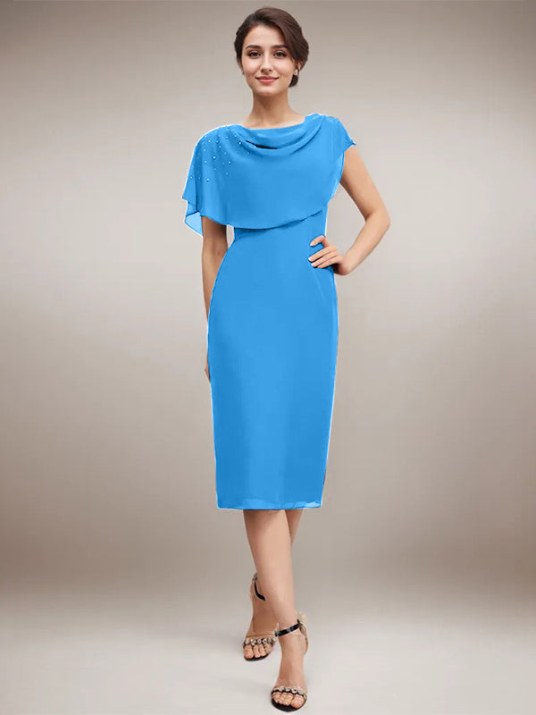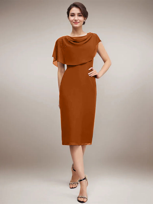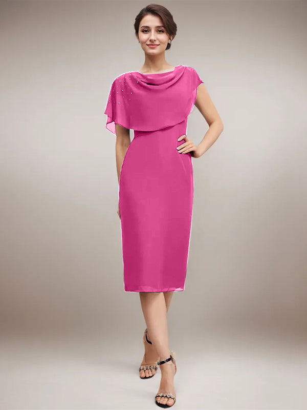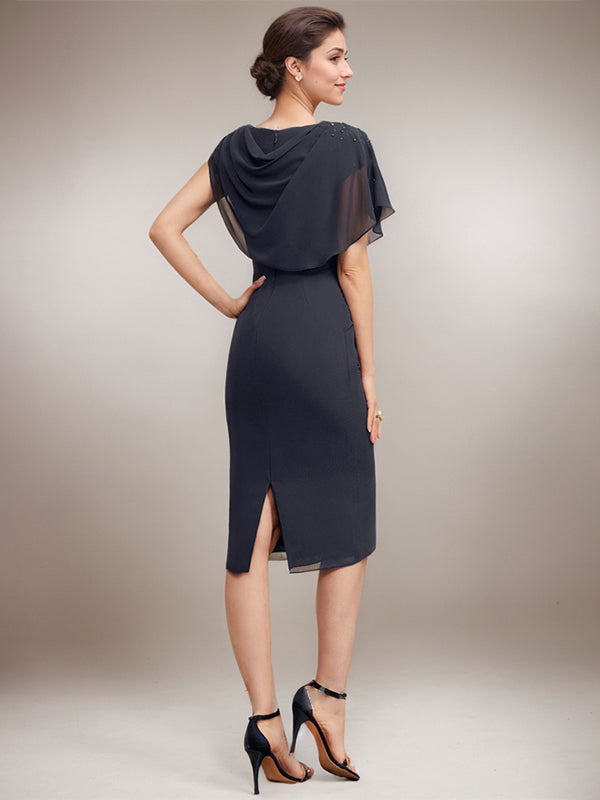 Sheath/Column Scoop Knee-Length Chiffon Mother of the Bride Dress With Beading