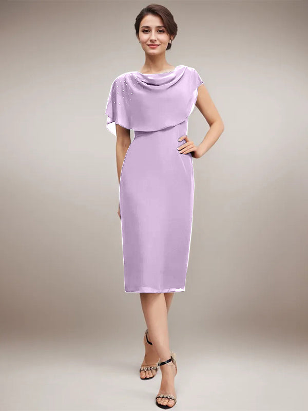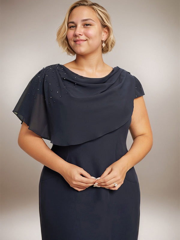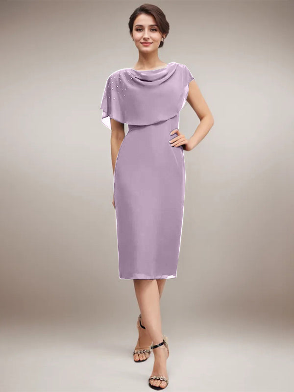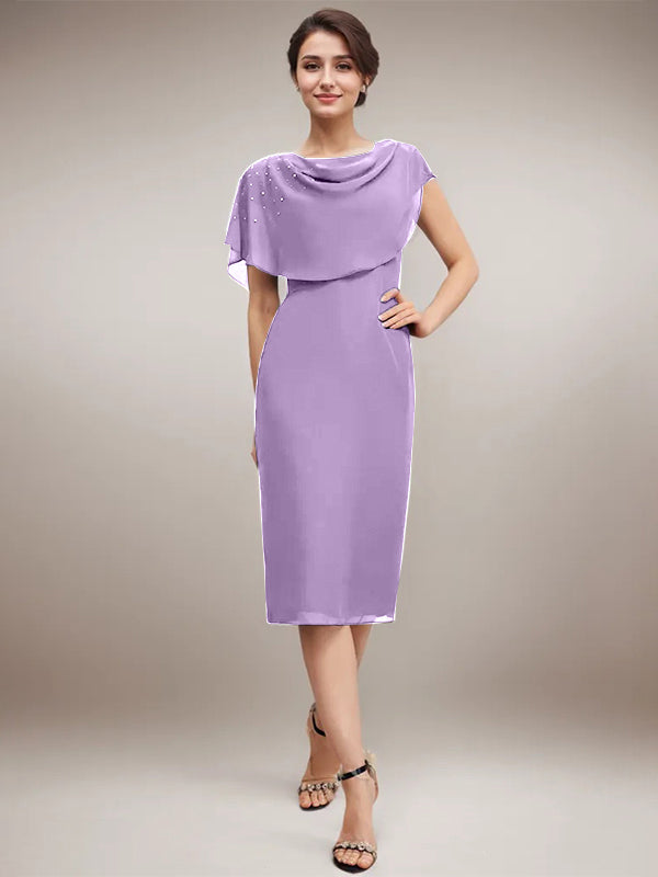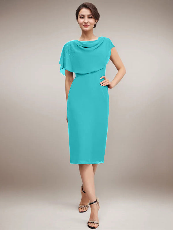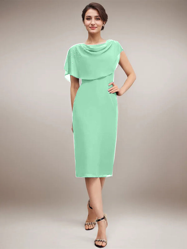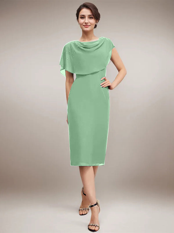 Sheath/Column Scoop Knee-Length Chiffon Mother of the Bride Dress With Beading