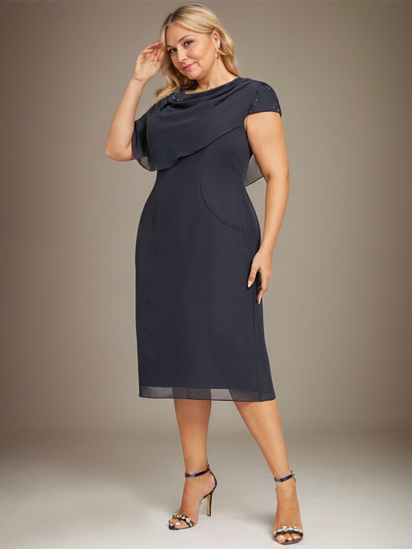 Sheath/Column Scoop Knee-Length Chiffon Mother of the Bride Dress With Beading