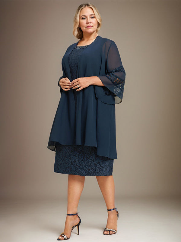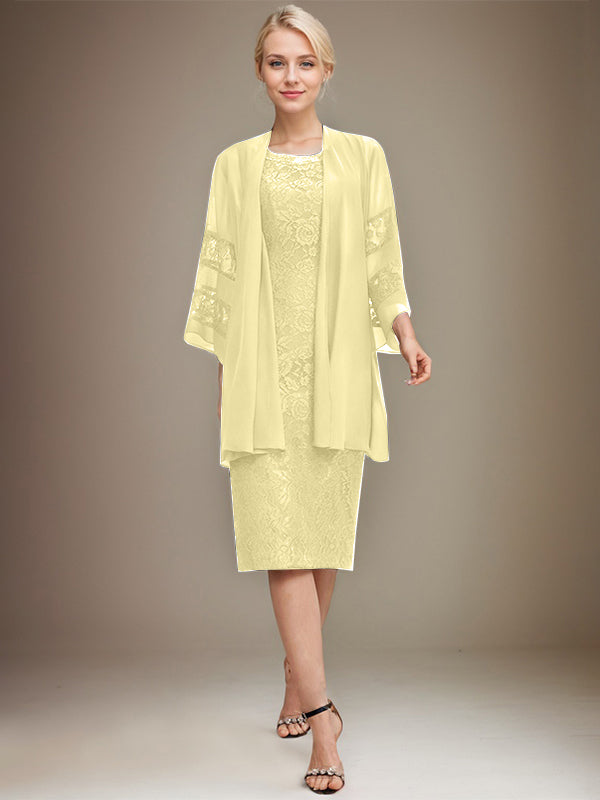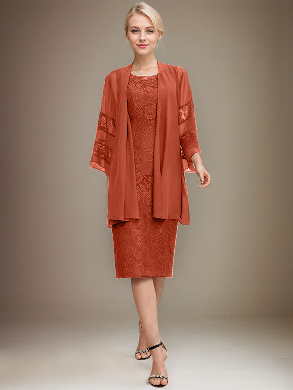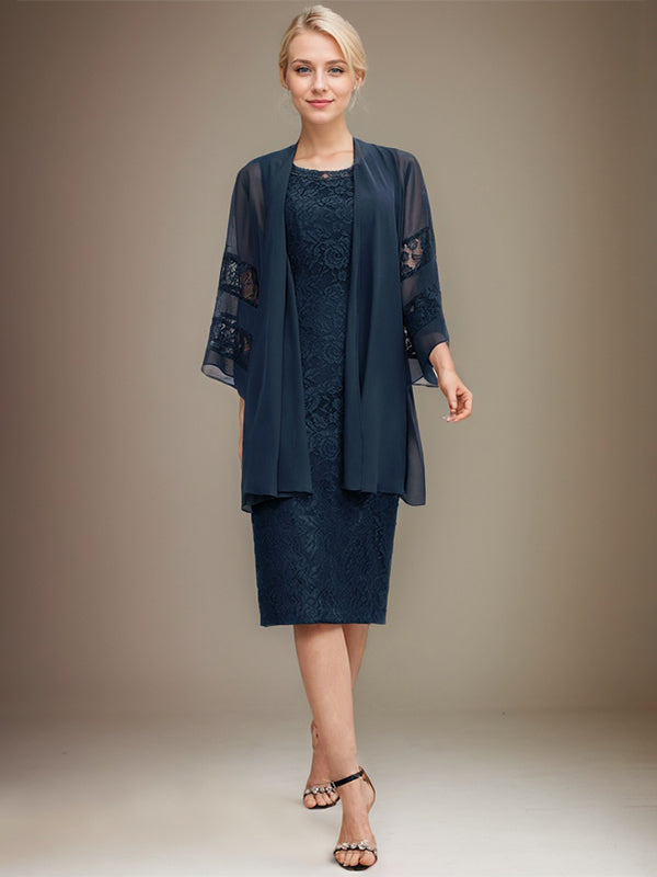 Sheath/Column Scoop Knee-Length Lace Mother of the Bride Dress With Sequins Beading