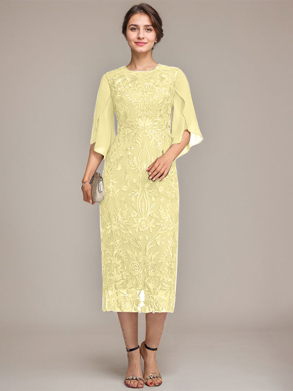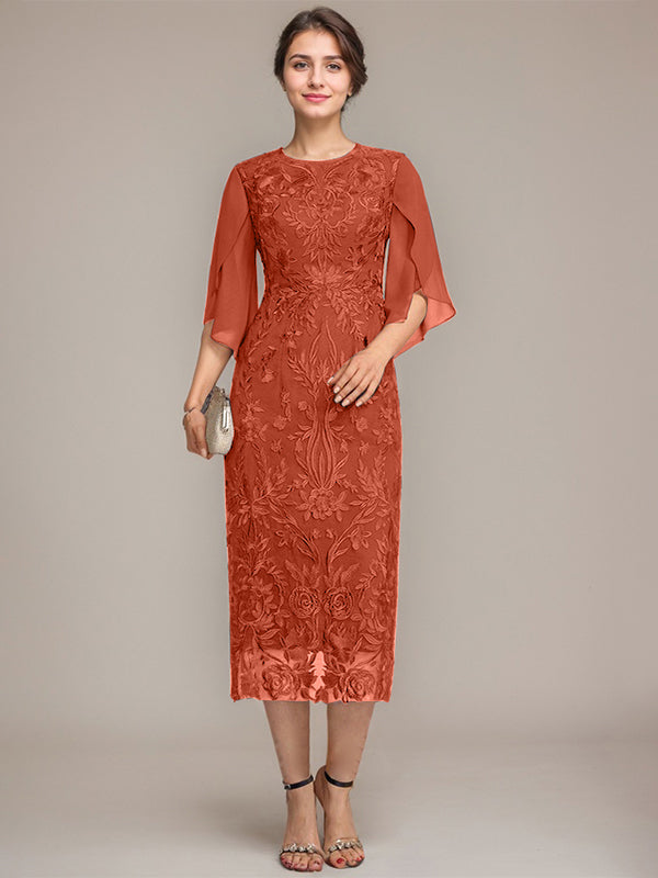 Sheath/Column Scoop Tea-Length Lace Chiffon Mother of the Bride Dress