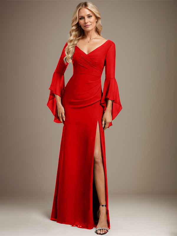 Sheath/Column V-Neck Floor-Length Chiffon Evening Dress With Pleated