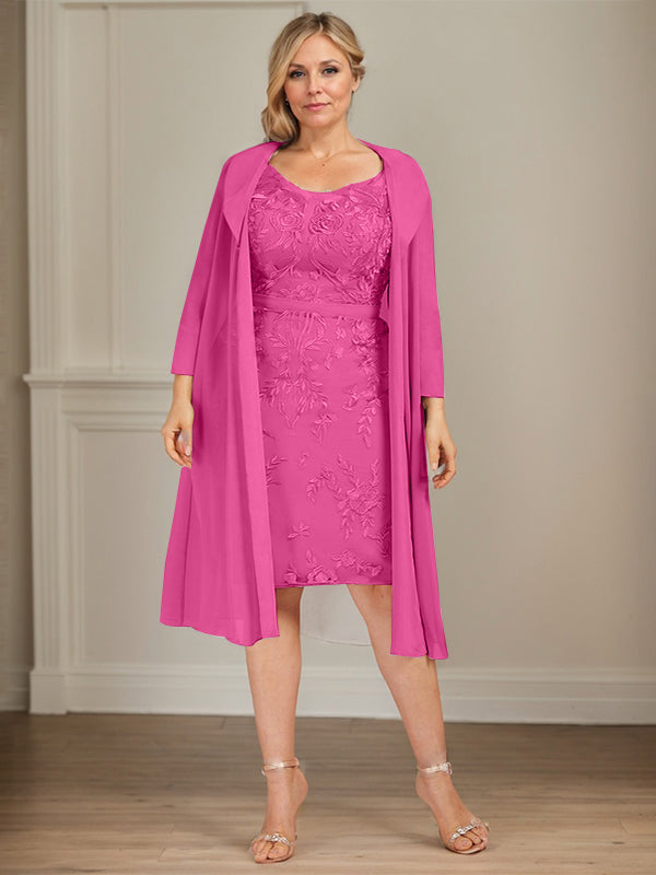 Sheath/Column V-Neck Knee-Length Lace Chiffon Mother of the Bride Dress