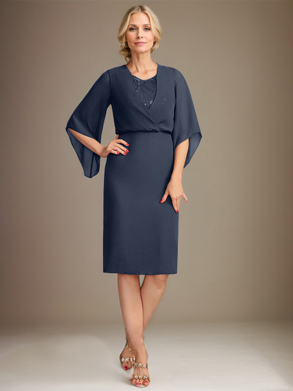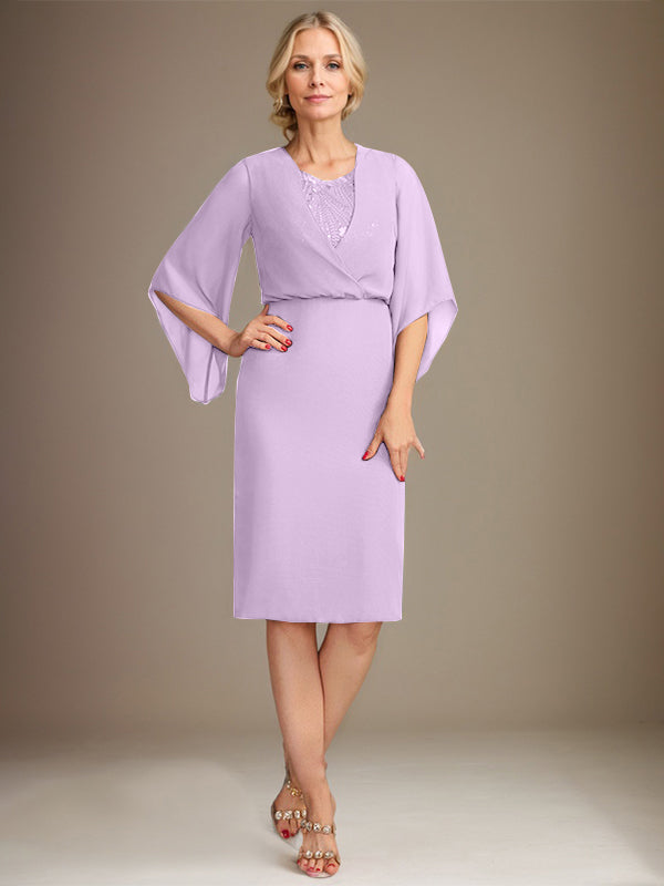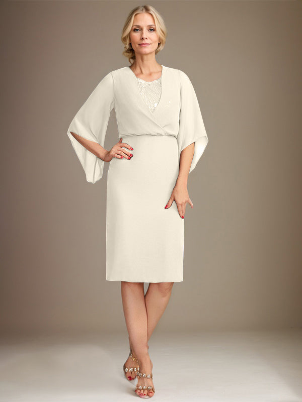 Sheath/Column V-Neck Knee-Length Lace Chiffon Mother of the Bride Dress With Sequins