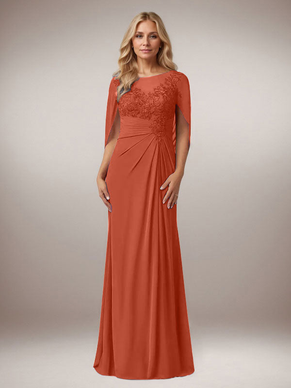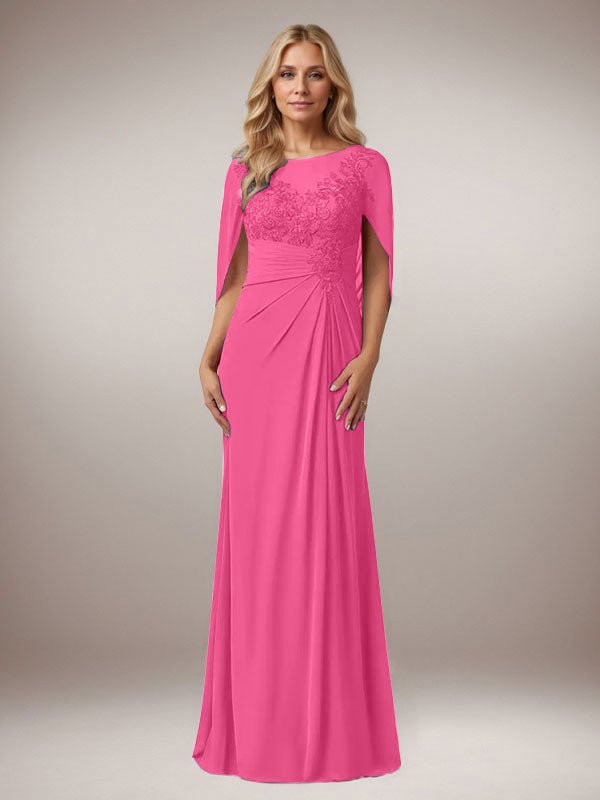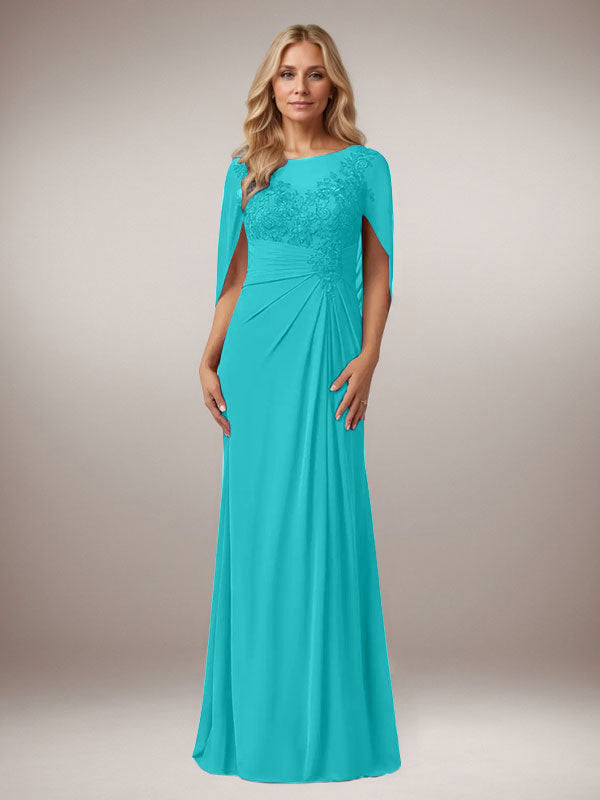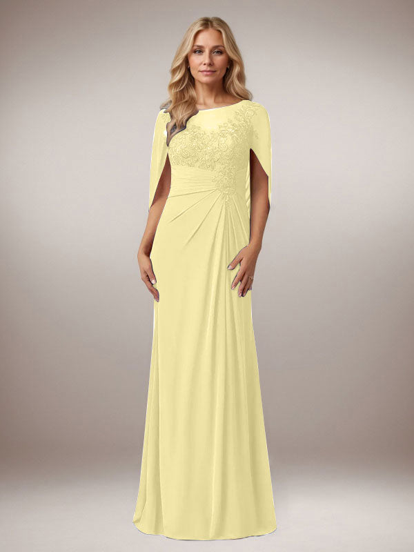 A-Line Capelet Chiffon Mother Of The Bride Dresses With Lace