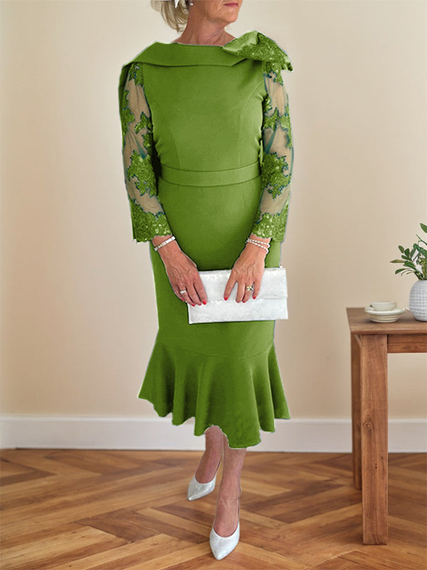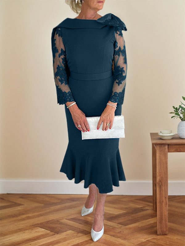 Trumpet/Mermaid Elastic Satin(Slight Stretch) Mother Of The Bride Dresses With Bow(s)/Lace