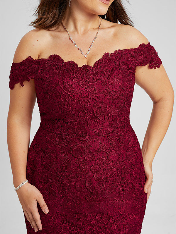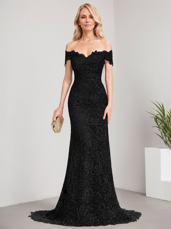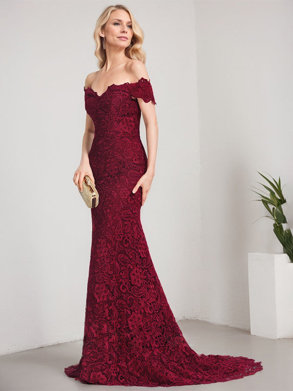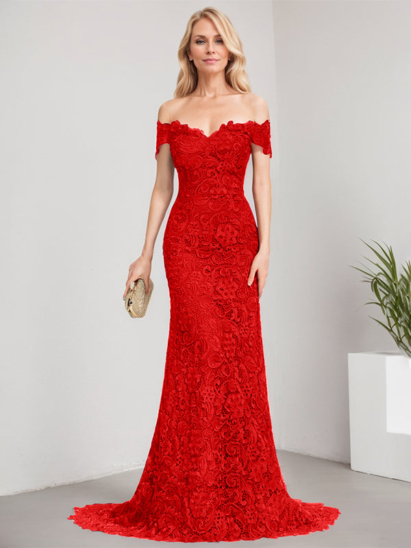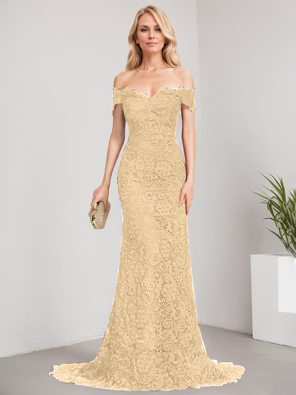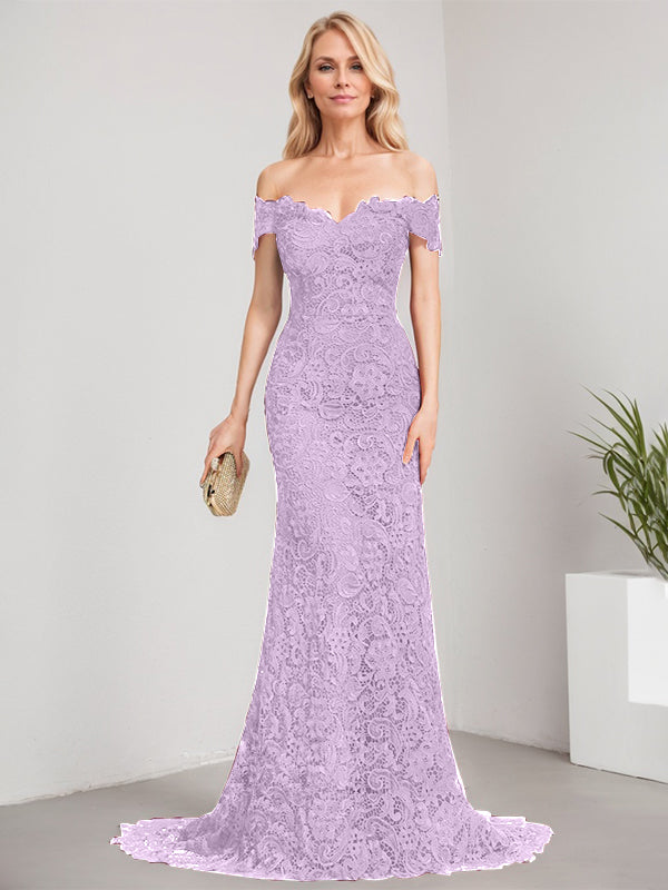 Trumpet/Mermaid Off the Shoulder Sweep Train Lace Mother of the Bride Dress
