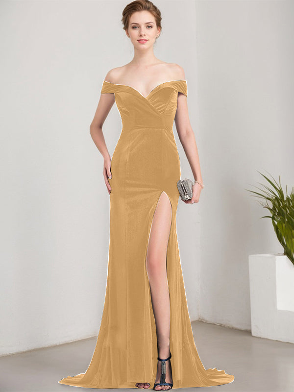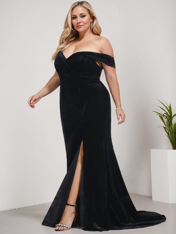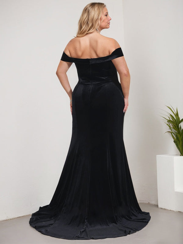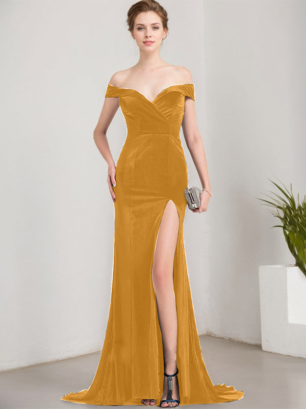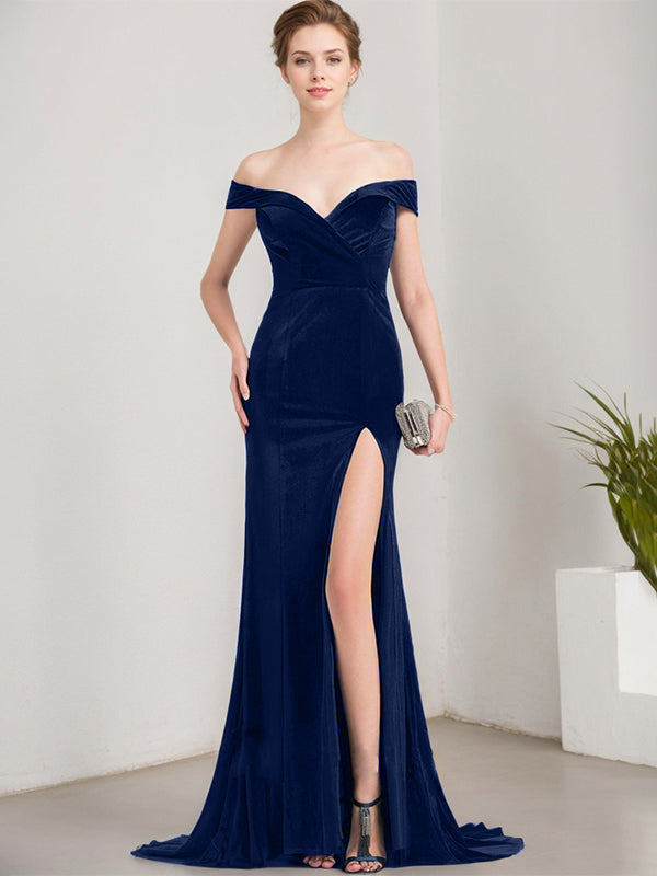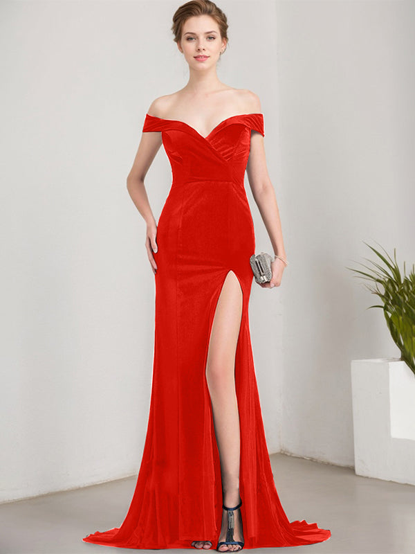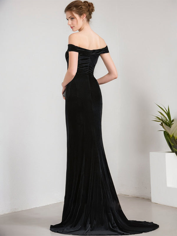 Trumpet/Mermaid Off the Shoulder Sweep Train Velvet Evening Dress